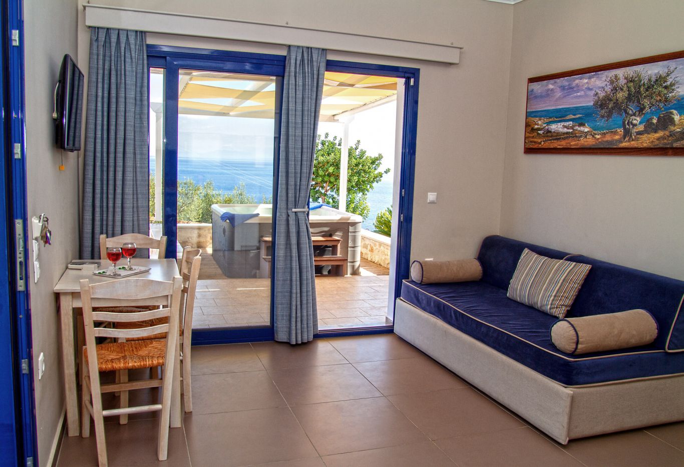 Διαμερίσματα 40 τετρ. μέτρων που μπορούν να φιλοξενήσουν μέχρι 4 άτομα. Κάθε διαμέρισμα διαθέτει ιδιωτική βεράντα εξοπλισμένη με ιδιωτικό Jacuzzi Spa, με θέα στη θάλασσα.