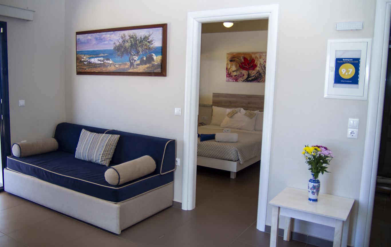 - Ένα Υπέρδιπλο Κρεββάτι + Δύο μονά Κρεββάτια / Καναπές